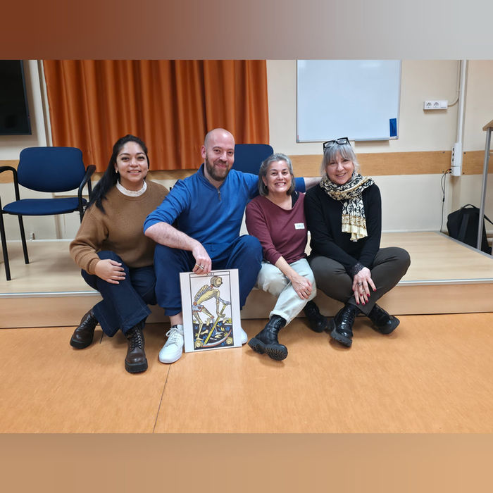 Descubrir a Ismael fue, para mí, una reconciliación con el tarot. Tras años de no tocar las cartas, habiendo dejado de lado esta práctica porque, cuando empecé a estudiarla, lo que se esperaba de alguien que trabajará con el tarot era que predijera el futuro y que respondiera preguntas que, al menos para mí, resultaban incómodas. Sentía un gran conflicto interno al trabajar el Tarot, sentía que era una herramienta sagrada, un manantial de sabiduría, pero el uso que me pedían que hiciera de él no me encajaba con lo que yo sentía. Hasta que encontré Ismael. Su forma de trabajar con el tarot, la mirada que tiene hacia él, la manera que te lo transmite y el lugar sagrado que le da me permitió reconciliarme con esta maravillosa herramienta. Con él, mi mirada hacia el tarot cambió profundamente, y pude verlo no solo como una fuente de sabiduría, sino como un verdadero camino hacia el autoconocimiento y el crecimiento espiritual. Ismael no solo es mi Maestro, también es la es la persona que ha hecho posible que el Tarot y yo nos miremos con amor y solo por eso le voy a estar eternamente agradecida. A raíz de esto, tome la decisión de ir a buscarlo a su casa para proponerle hacer una formación presencial. Su agenda estaba a tope, y no había manera de encontrar un espacio para hablar, así que le pedí una consulta de Tarot. Durante la sesión, yo estaba pendiente del reloj, esperando que termináramos antes de tiempo, porque sabía que necesitaba hablar con él y su disponibilidad era muy limitada. En cuanto terminamos, sin siquiera anotar el ritual que me había dado, recogí las cartas y le dije: “Sí, sí... todo muy bien, pero vengo a proponerte que organicemos una formación presencial”. Esto fue el curso 21-22, y el dijo SI. Desde entonces, las formaciones y eventos presenciales han ido creciendo, trayéndonos inmensas alegrías, experiencias inolvidables y un aprendizaje constante. Llegué a la escuela a través del amor hacia el tarot y ella me proporcionó una mirada amorosa y una reconciliación con esta poderos herramienta. Formar parte del equipo de la escuela me brinda la oportunidad de ponerme al servicio de la vida a través de ella y de mi maestro, Ismael. Es un camino que me llena de gratitud, aprendizaje, alegría y respeto.
